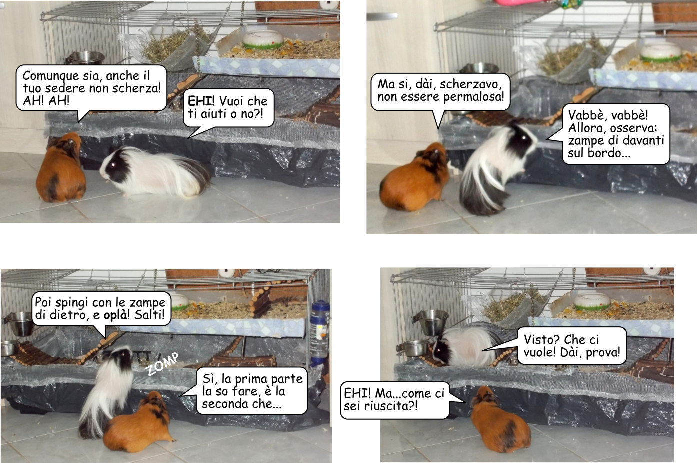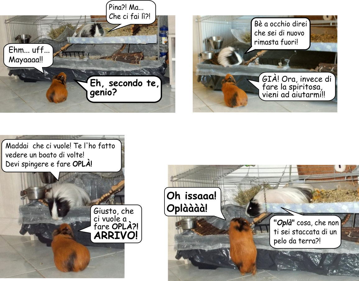 Per festeggiare le 11.000 visite ho pensato di raccogliere in un fumetto le foto fatte in sequenza di Pina che rimane come al solito fuori dalla gabbia e non riesce a tornare dentro, con Maya che al contrario, con molta agilità entra e esce come vuole...Riguardando le foto ho immaginato un dialogo tra le due e così....buon divertimento, spero vi piaccia! :)